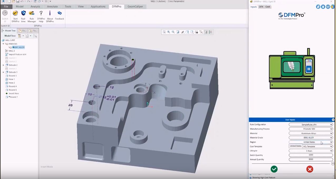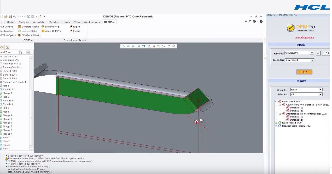 DFMPro is a CAD integrated Design for Manufacturability & Assembly (DFM/A) solution that allows design engineers to check their designs for producibility. DFMPro is well integrated within CAD platforms like Creo ParametricTM (formerly Pro/E), SOLIDWORKS® and NXTM which ensures that users are able to identify and rectify DFM checks within their own CAD platform.